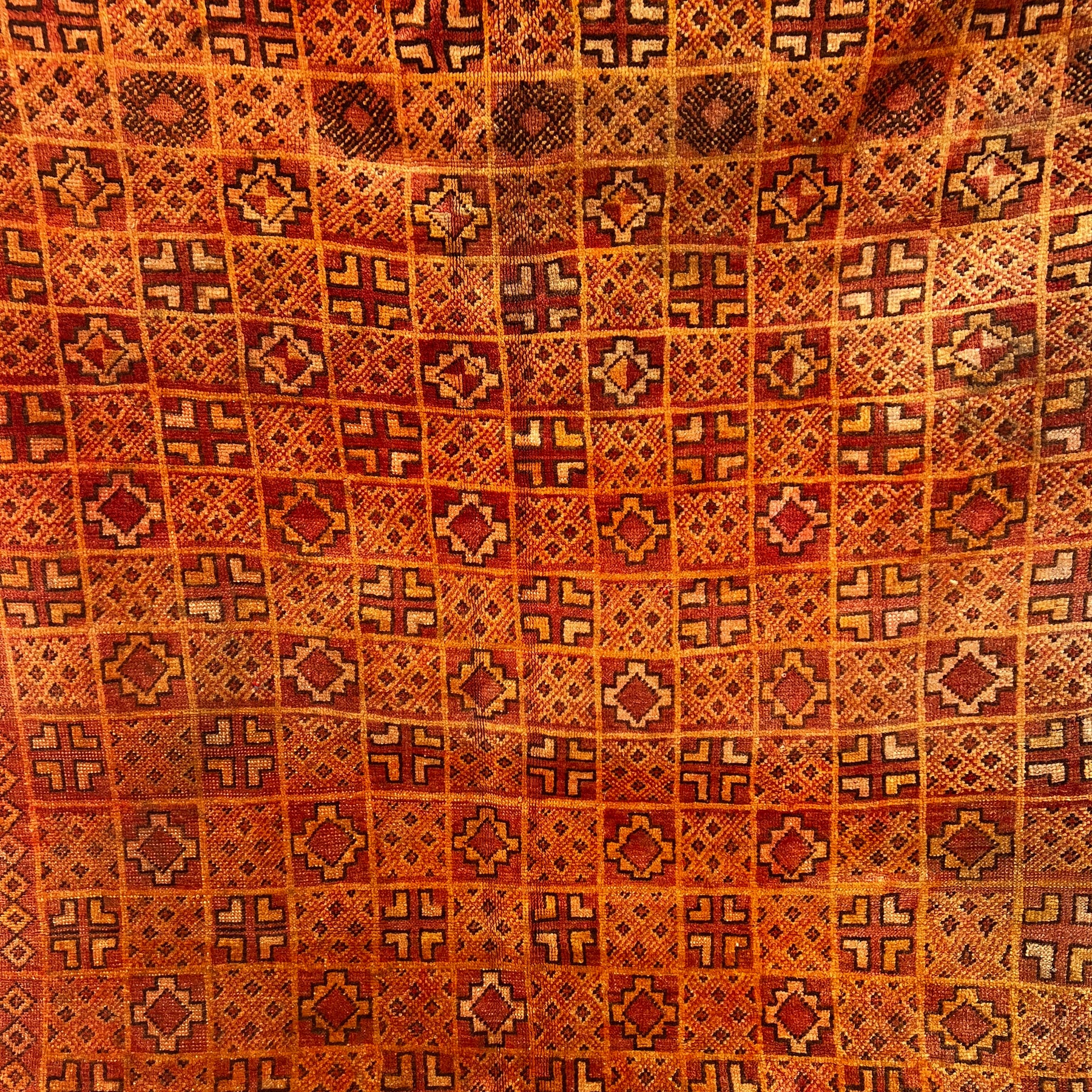Each rug tells a story—woven entirely by hand using natural wool, dyed with traditional techniques. This vintage piece carries gentle signs of age and history, adding depth and soul to any room.